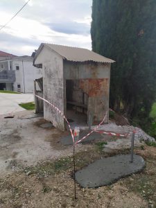 Οι εργασίες ξεκίνησαν με την χωροθέτηση και την κατασκευή των βάσεων στήριξης προκειμένου να τοποθετηθούν στη συνέχεια τα στέγαστρα.