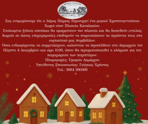 Με χαρά σας ενημερώνουμε ότι και φέτος ο Δήμος Πάργας δημιουργεί ένα μαγικό Χριστουγεννιάτικο Χωριό στην Πλατεία Καναλακίου, για να γεμίσουμε όλοι μαζί το τόπο μας με φως, χαρά και γιορτινή διάθεση!