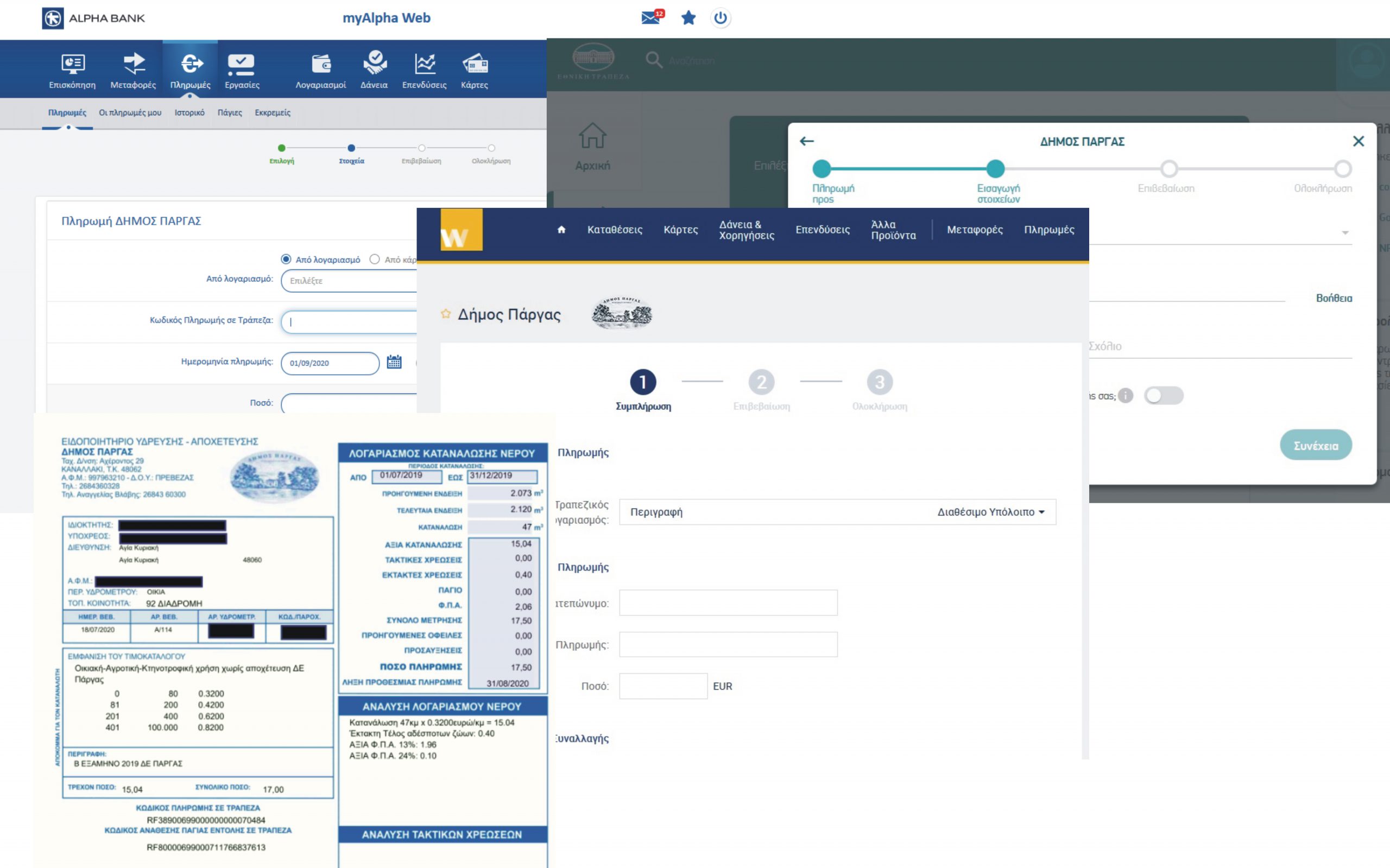 Ο Δήμος Πάργας ξεκινά από την ύδρευση την παροχή της δυνατότητας ηλεκτρονικών πληρωμών στους δημότες μέσω κωδικού ηλεκτρονικής πληρωμής RFxxxxxxxxxx. Για την καλύτερη εξοικείωση των δημοτών δημιουργήθηκαν οδηγίες για τις υπηρεσίες web bankig των τεσσάρων μεγαλύτερων τραπεζών της χώρας. Σύντομα θα προστεθεί στην ιστοσελίδα του Δήμου και η εξόφληση με την χρήση εικονικού ταμείου με χρεωστική κάρτα.