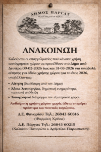 Παραχωρήσεις άδειας χρήσης χώρου έτους 2026