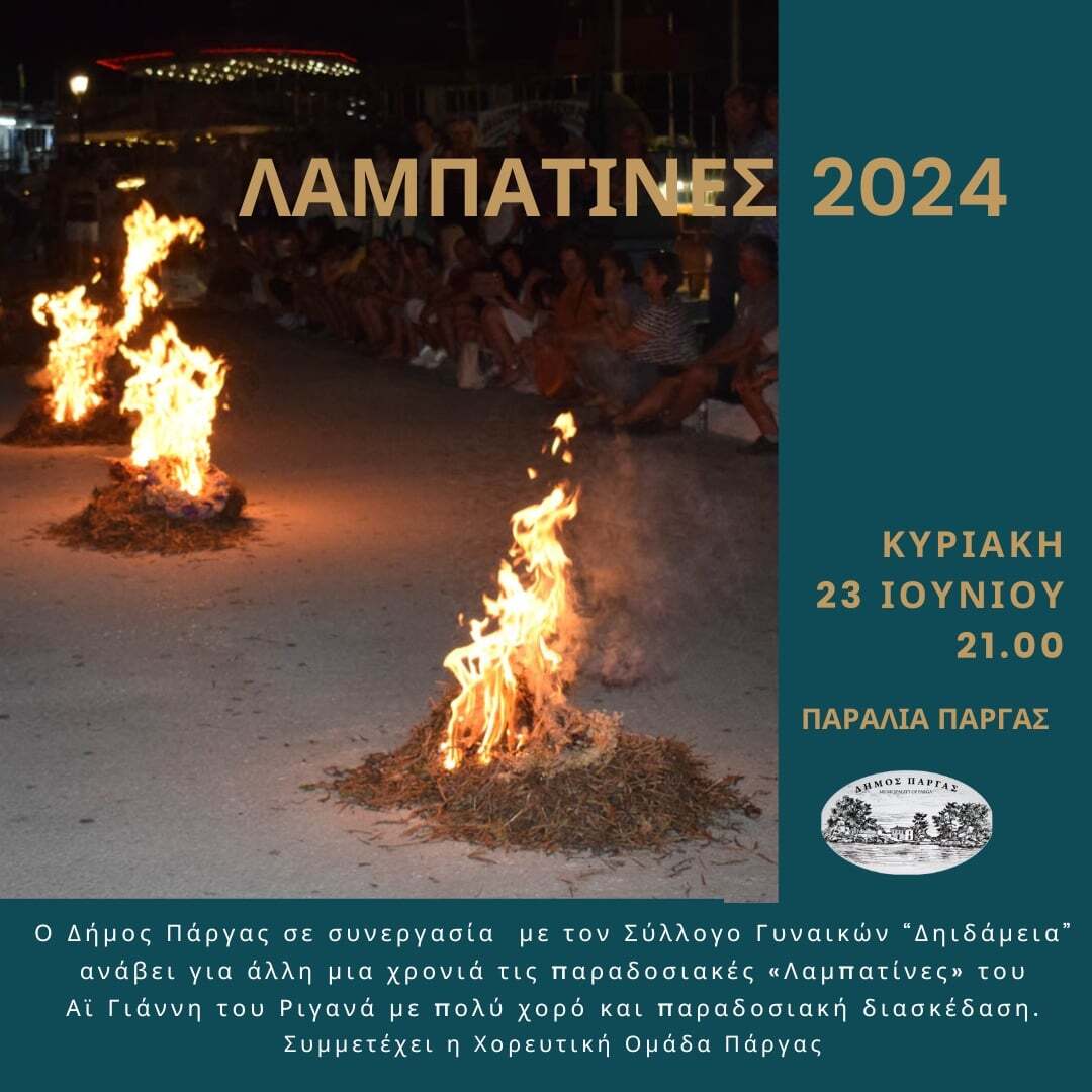 Ο Δήμος Πάργας σε συνεργασία με τον Σύλλογο Γυναικών “Δηιδάμεια” ανάβει για άλλη μια χρονιά τις παραδοσιακές “Λαμπατίνες” του Αϊ Γίαννη του Ριγανά με πολύ χορό και διασκέδαση.